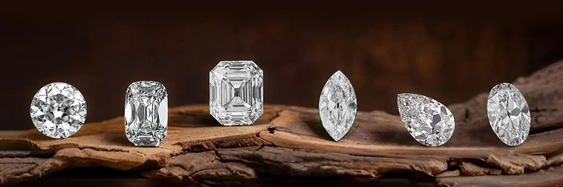 Old mine cut diamonds are a classic type of antique diamond, distinguished by their hand-cut craftsmanship. Unlike modern diamonds, which are shaped with high-tech equipment, these diamonds were manually cut, giving them a unique, warm sparkle that many people love about antique diamonds.