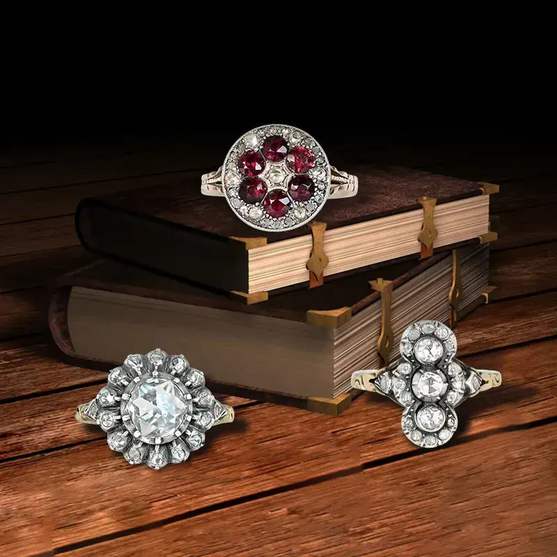 Georgian jewelry was crafted from yellow gold and silver, featuringgemstones like diamonds, pearls, sapphires, rubies, topaz, garnet, glass, and paste. Due to the limited development of stone-cutting tools and techniques, the jewelry from this era is easily dated. Popular diamond cuts include point cuts, table cuts, old mine cuts, antique cushion cuts, single cuts, and rose cuts.