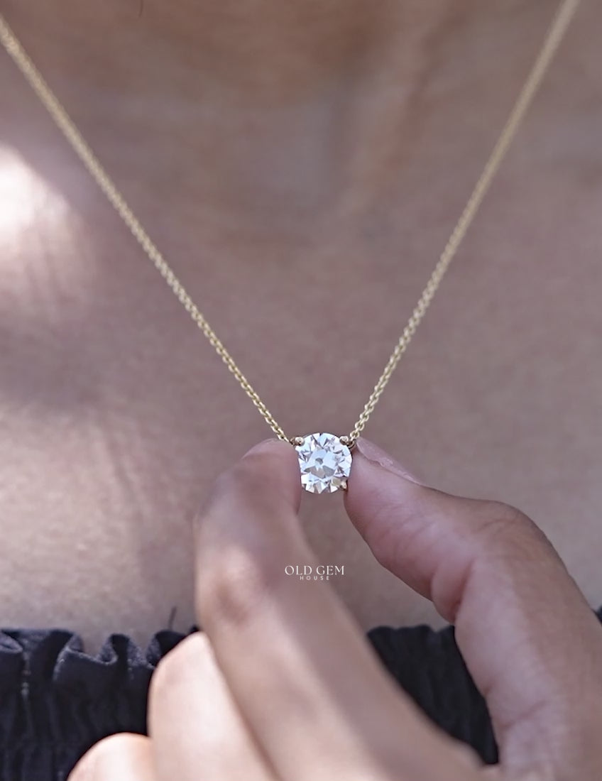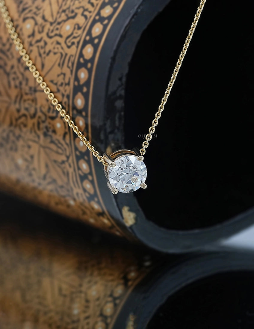 Discover timeless beauty with THE OLD GEM HOUSE — a stunning 2.50 Carat Old European Round Cut Solitaire Pendant. Crafted in 14K Yellow Gold and paired with a 16-inch chain, this pendant features a brilliant diamond in EF color, set with a secure four-prong back setting. Perfect as an anniversary gift, this solitaire pendant is a symbol of enduring love and elegance.