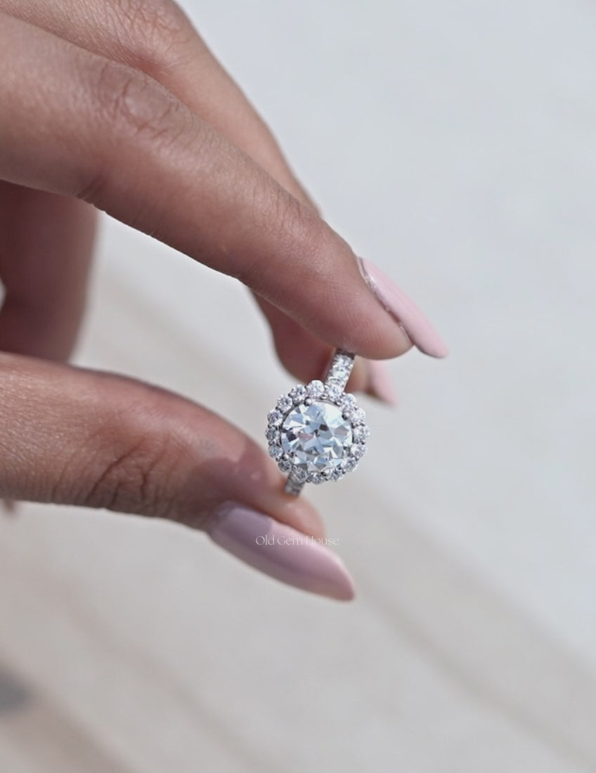An elegant vintage-style ring from Old Gem House , featuring a 2 carat Old European Round EF-VS Diamond . Surrounded by a 0.95 TCW Of halo and accented with Round Lab-Gown Diamonds, Created using premium 925 Sterling Silver , this timeless ring is perfect as a wedding or anniversary gift for her.