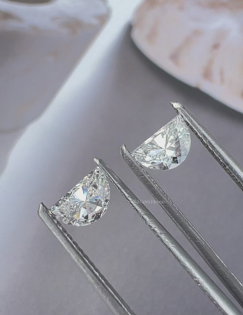 Each diamond from THE OLD GEM HOUSE is ethically sourced and precision-cut from premium lab-grown rough by master gem cutters. This beautiful 1.00 total carat Half Moon lab-grown diamond pair is admired for its unique curved silhouette and vintage-inspired symmetry. With a high-quality EF color grade and VS clarity, these eco-friendly, conflict-free diamonds are ideal for side stones in custom rings or elegant settings that celebrate sustainable luxury with timeless appeal.