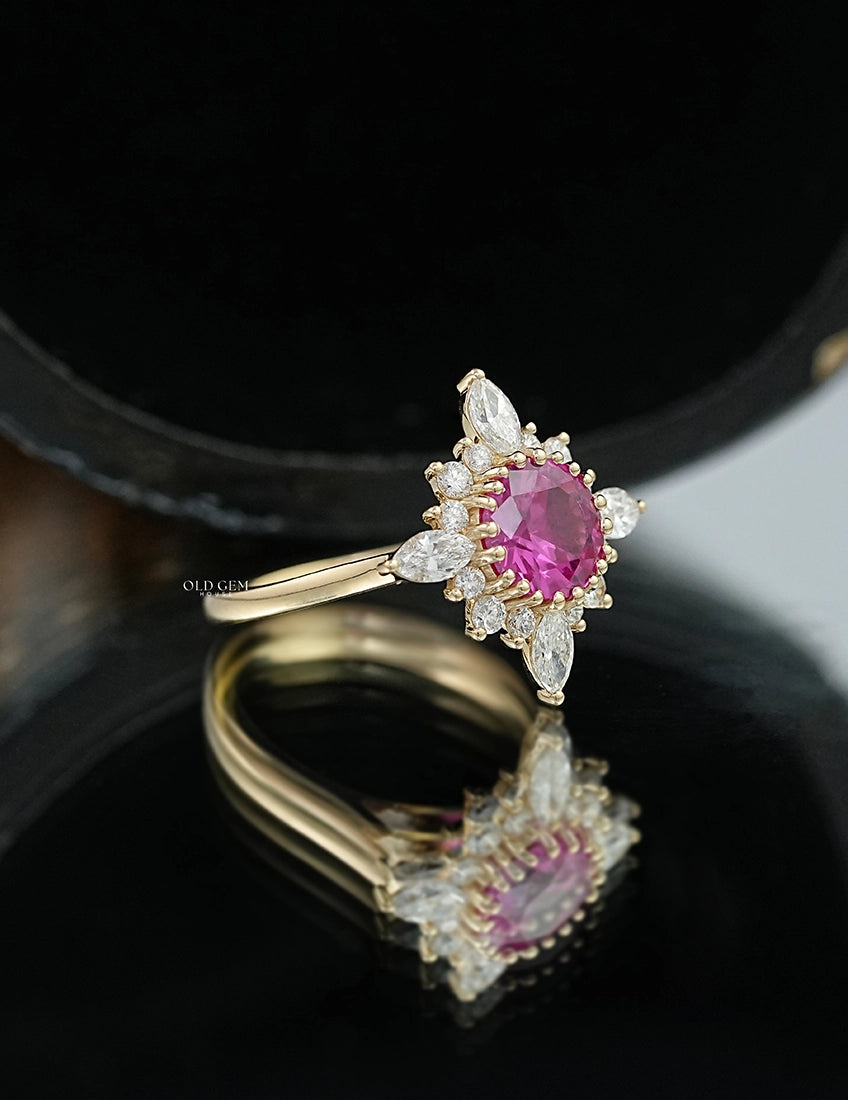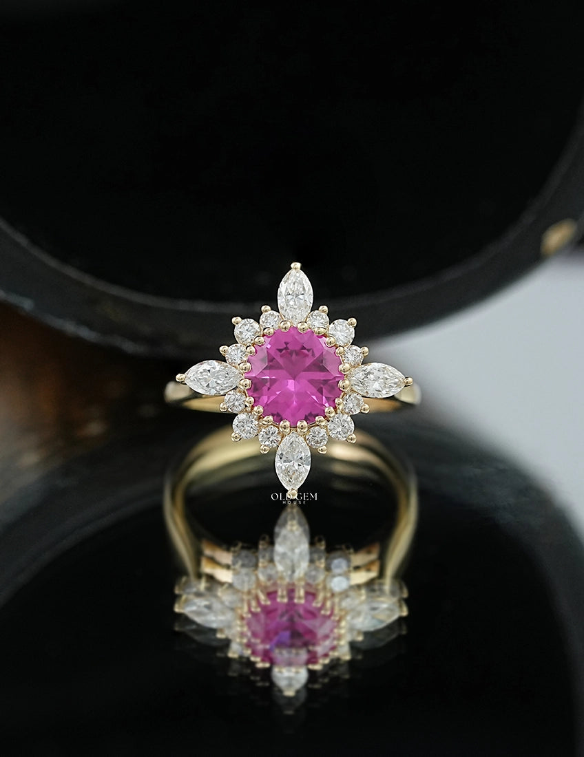 Old Gem House presents this delicate Pink Sapphire Halo Engagement Ring. Centered with a stunning 2.20 CT pink sapphire and framed by a halo of accent stones, this ring celebrates feminine elegance and luminous color. A perfect engagement gift for wife, ideal for a romantic and unforgettable proposal.