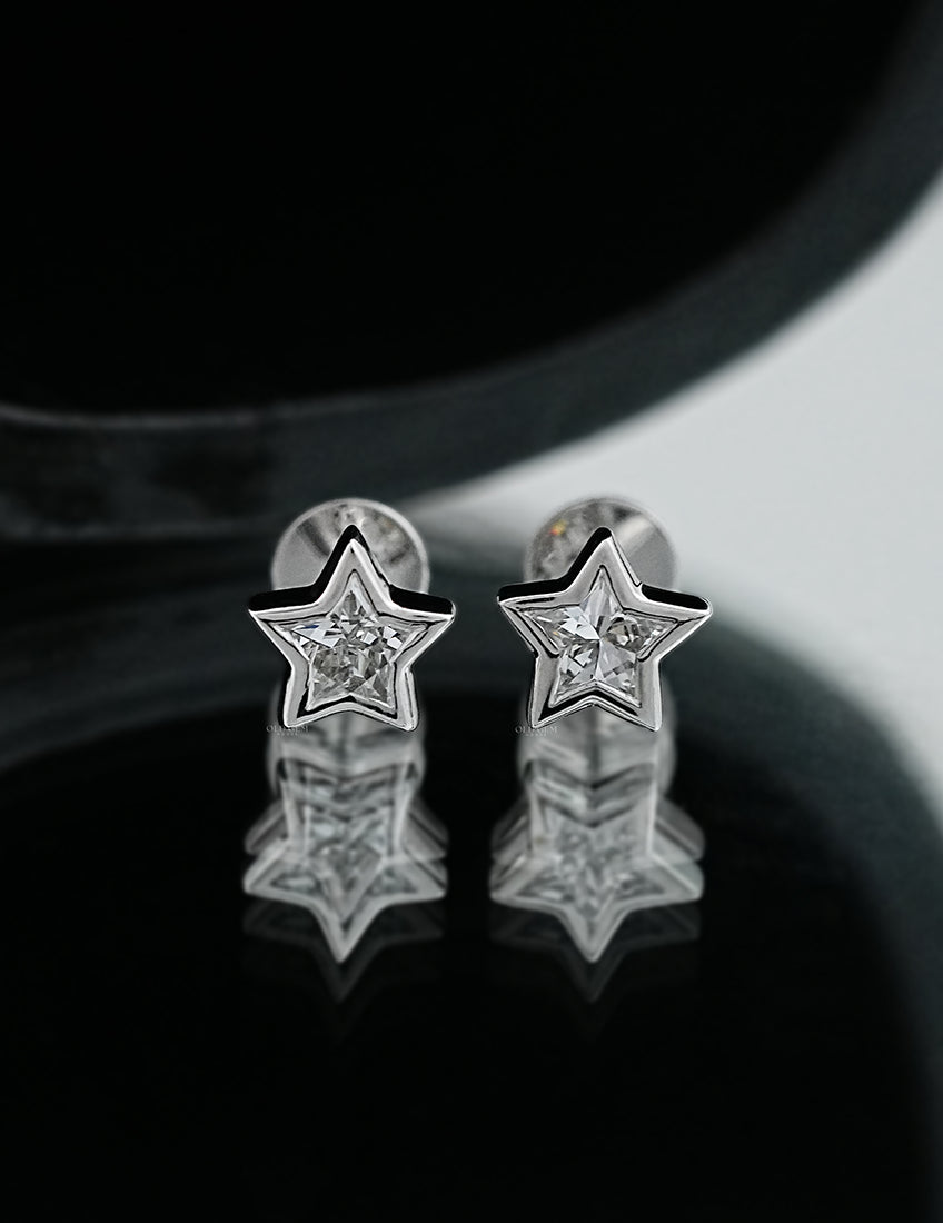 Discover timeless elegance with THE OLD GEM HOUSE and celebrate sparkle with these 0.50 Ct Each Star Cut Bezel Set Diamond Stud Earrings, crafted in elegant 14K White Gold. Featuring secure screw back closures, these studs are set with lab-grown diamonds in EF color and VS clarity, offering brilliance and durability. Perfect as a baby birthday gift or a thoughtful festive gift for her, these timeless earrings add elegance to every occasion.
