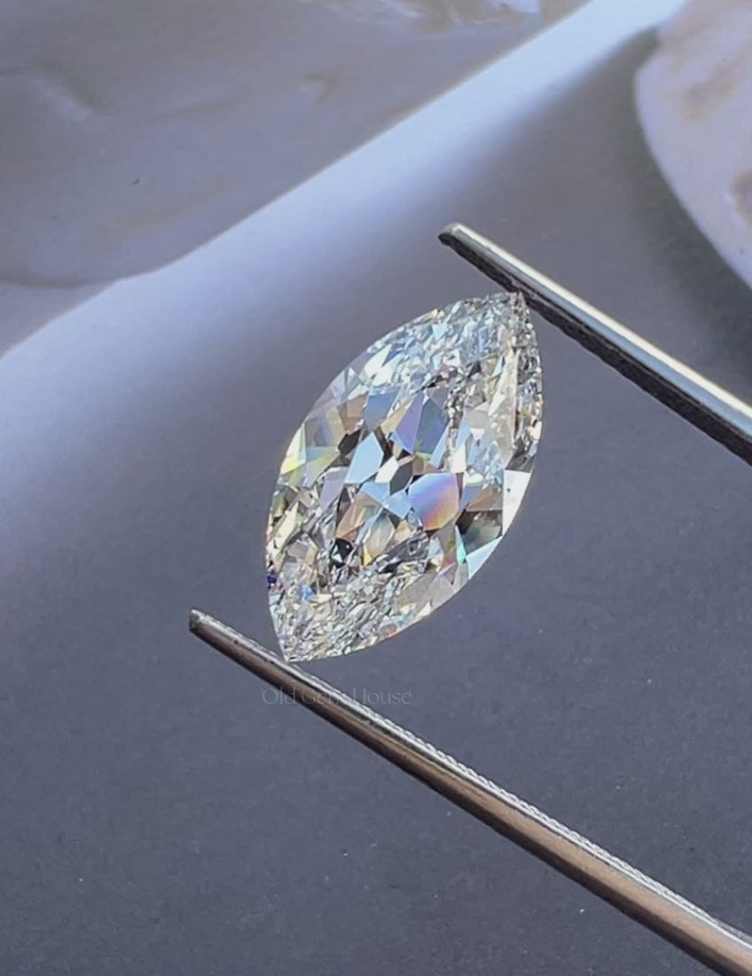 Each of The OLD GEM HOUSE diamonds is ethically sourced and expertly cut from premium rough by our master gem cutters. This diamond is 3.20 Carat in a Old Mine Marquise Cut with a color grade of EF and clarity of VS. It is a Lab-Grown Diamond, offering both beauty and sustainability.